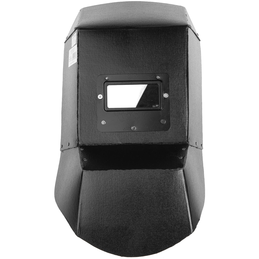 Duża maska spawalnicza wykonana ze sztywnego preszpanu.