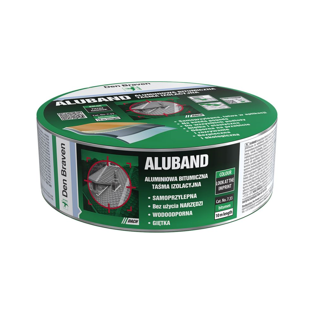 Samoprzylepna taśma uszczelniająca na bazie mieszaniny bitumów i żywic syntetycznych, z aluminiowym filmem ochronnym, zbrojona wewnątrz, z wierzchu kryta powłoką poliestrową, przeznaczona do wodochronnych izolacji dekarskich i ogólnobudowlanych