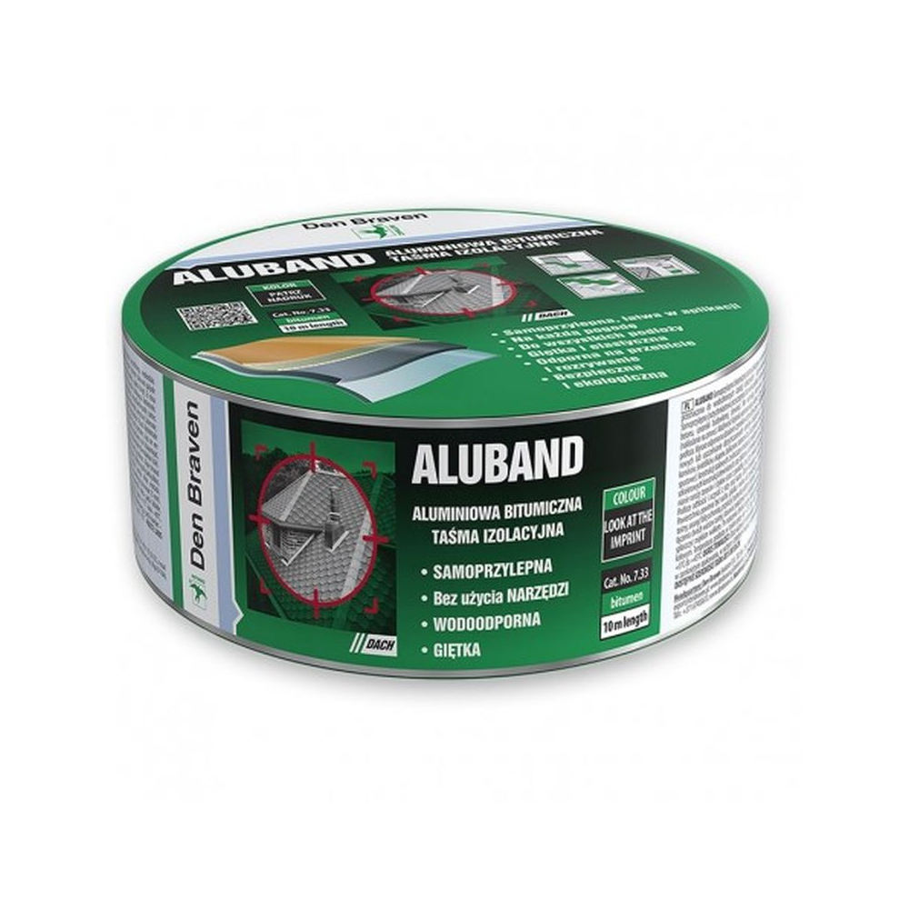 Samoprzylepna taśma uszczelniająca na bazie mieszaniny bitumów i żywic syntetycznych, z aluminiowym filmem ochronnym, zbrojona wewnątrz, z wierzchu kryta powłoką poliestrową, przeznaczona do wodochronnych izolacji dekarskich i ogólnobudowlanych
