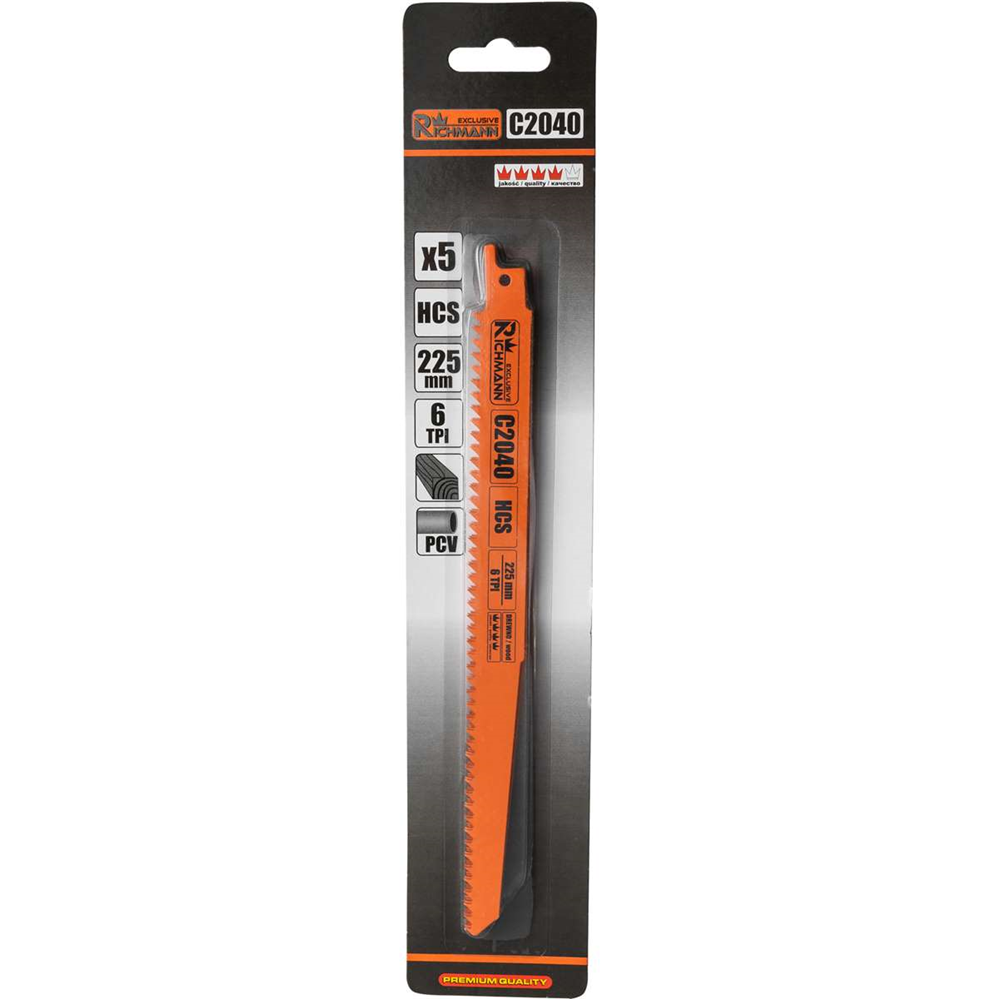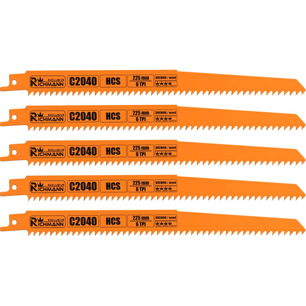 Zestaw 5 szt. brzeszczotów HCS o długości 225 mm przeznaczonych do pił
