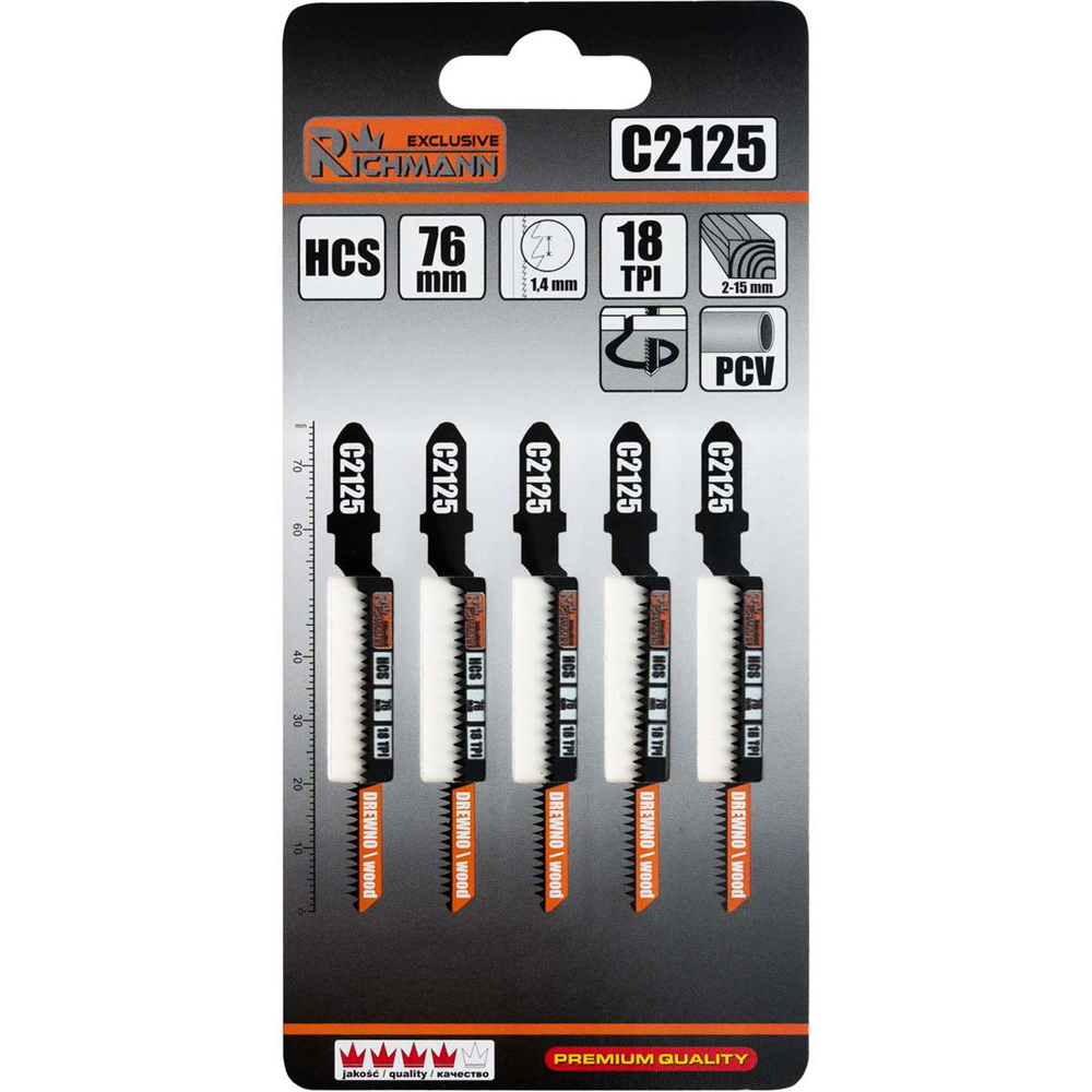 Zestaw 5 szt. brzeszczotów HCS o długość 76 mm przeznaczonych do