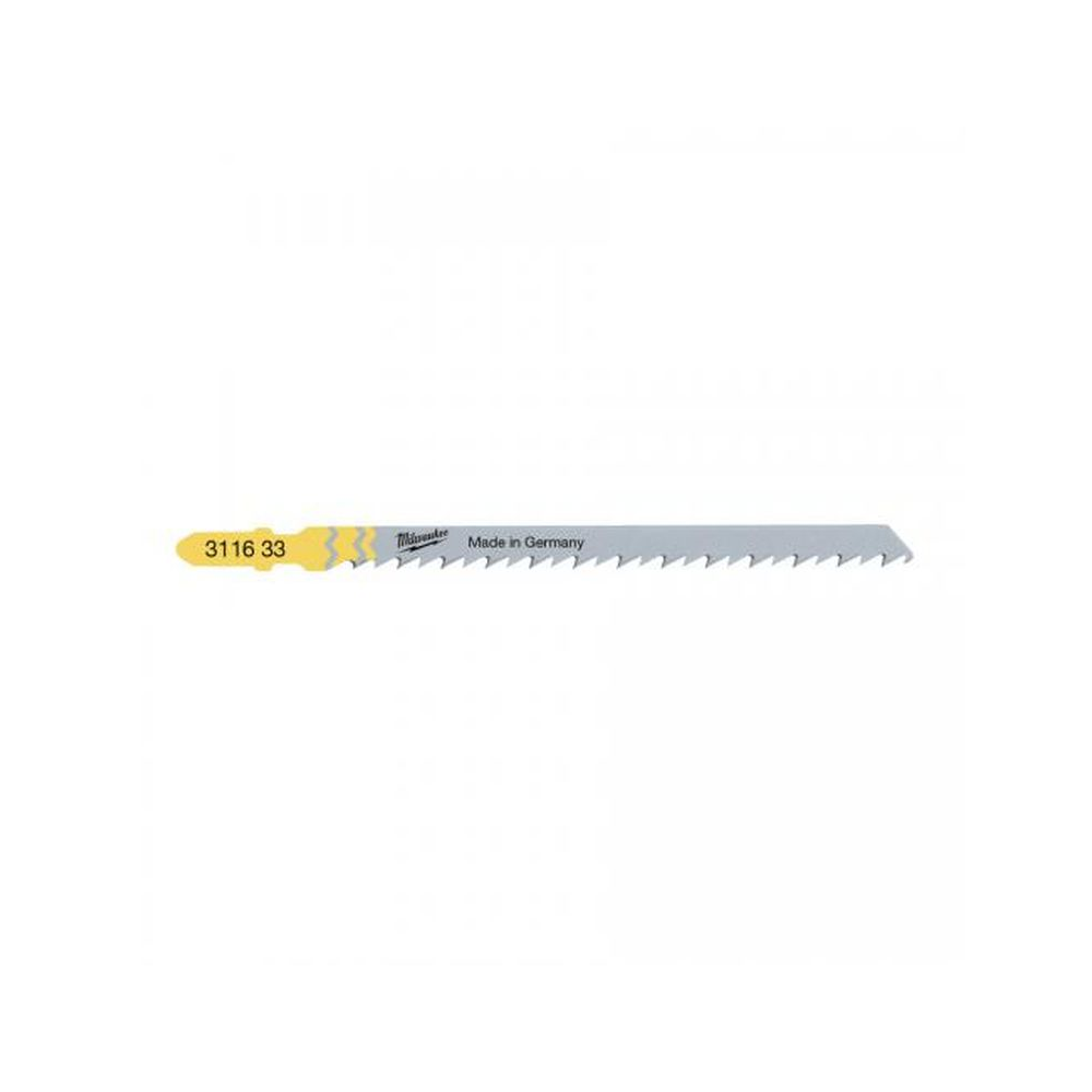 Brzeszczot Milwaukee 105 x 4 mm T 301 DL do wyrzynarek z przeznaczeniem do cięcia drewna i tworzyw sztucznych.