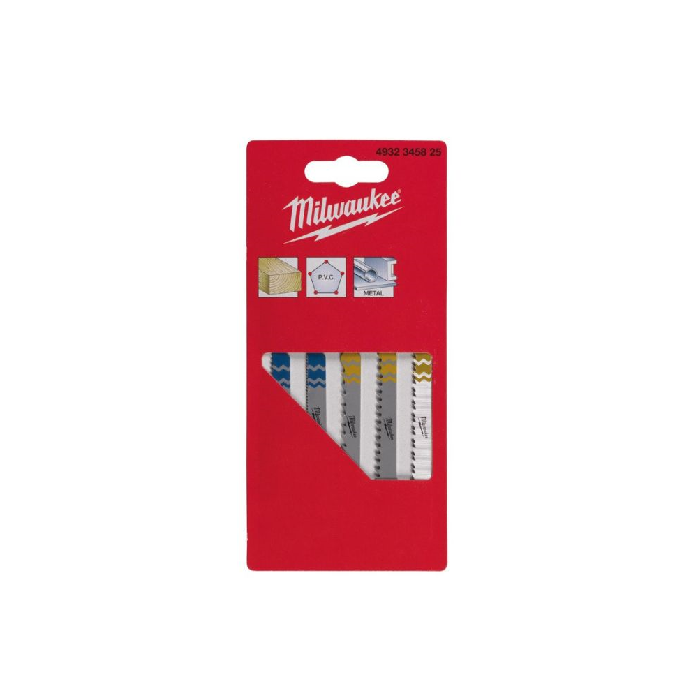 Zestaw Brzeszczotów Milwaukee do wyrzynarek z uchwytem typu T z przeznaczeniem do cięcia drewna i metalu.