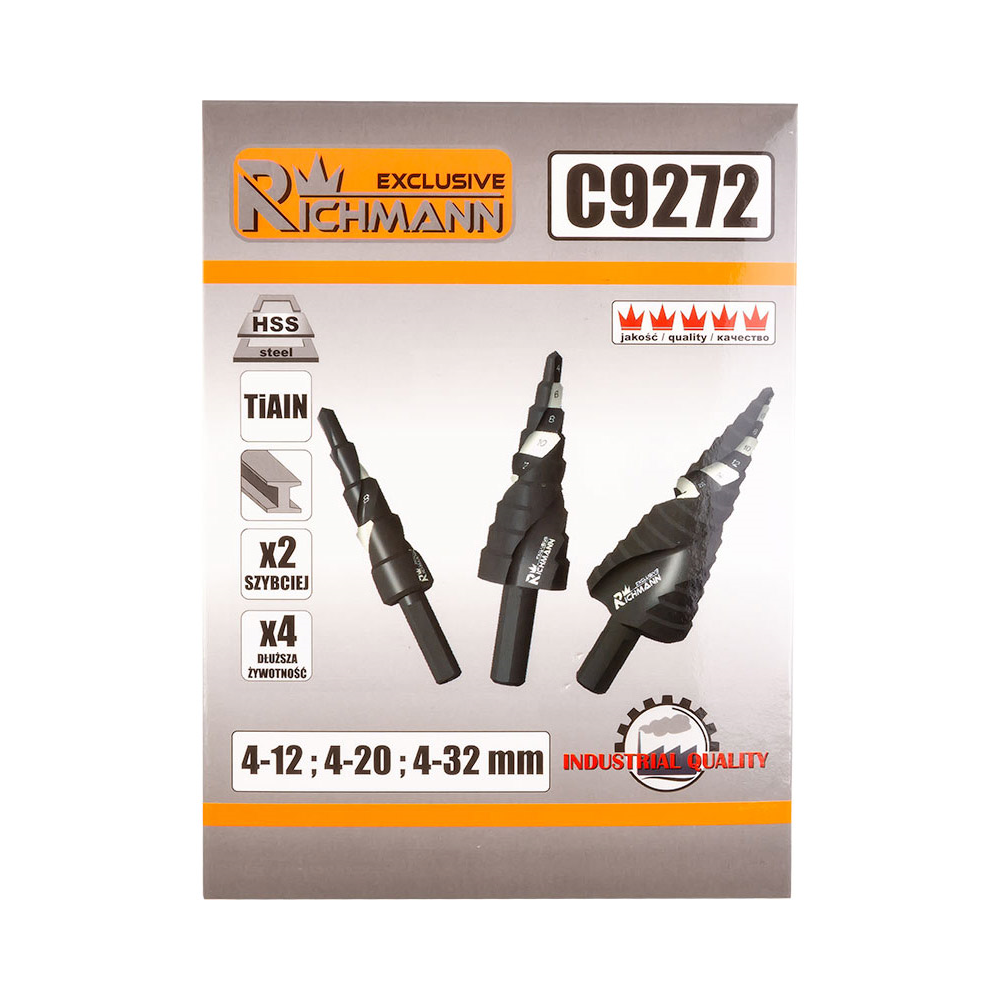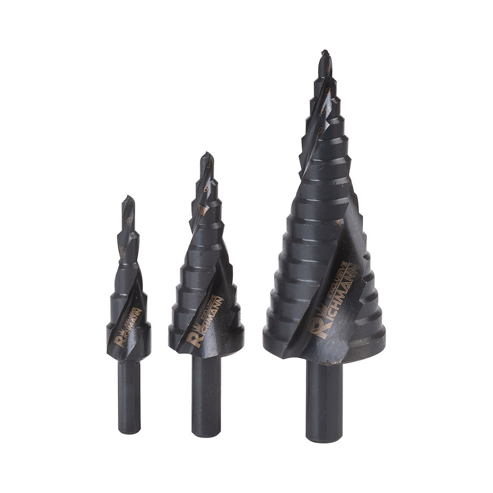 Zestaw 3 szt. wierteł stopniowych przeznaczonych do wiercenia
