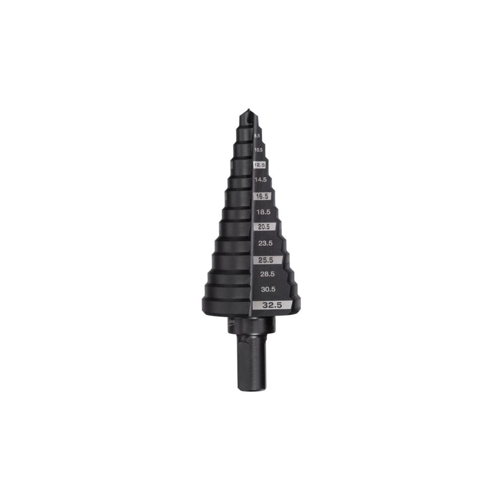 Każdy stopień tak zaszlifowany, aby wiertło automatycznie wygładzało krawędzie podczas wiercenia.