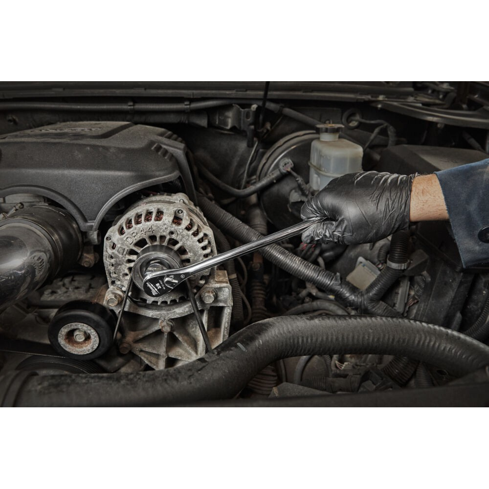 Mechanizm grzechotki z 90 zębami (skok roboczy 4°) umożliwia pracę w ciasnych przestrzeniach.