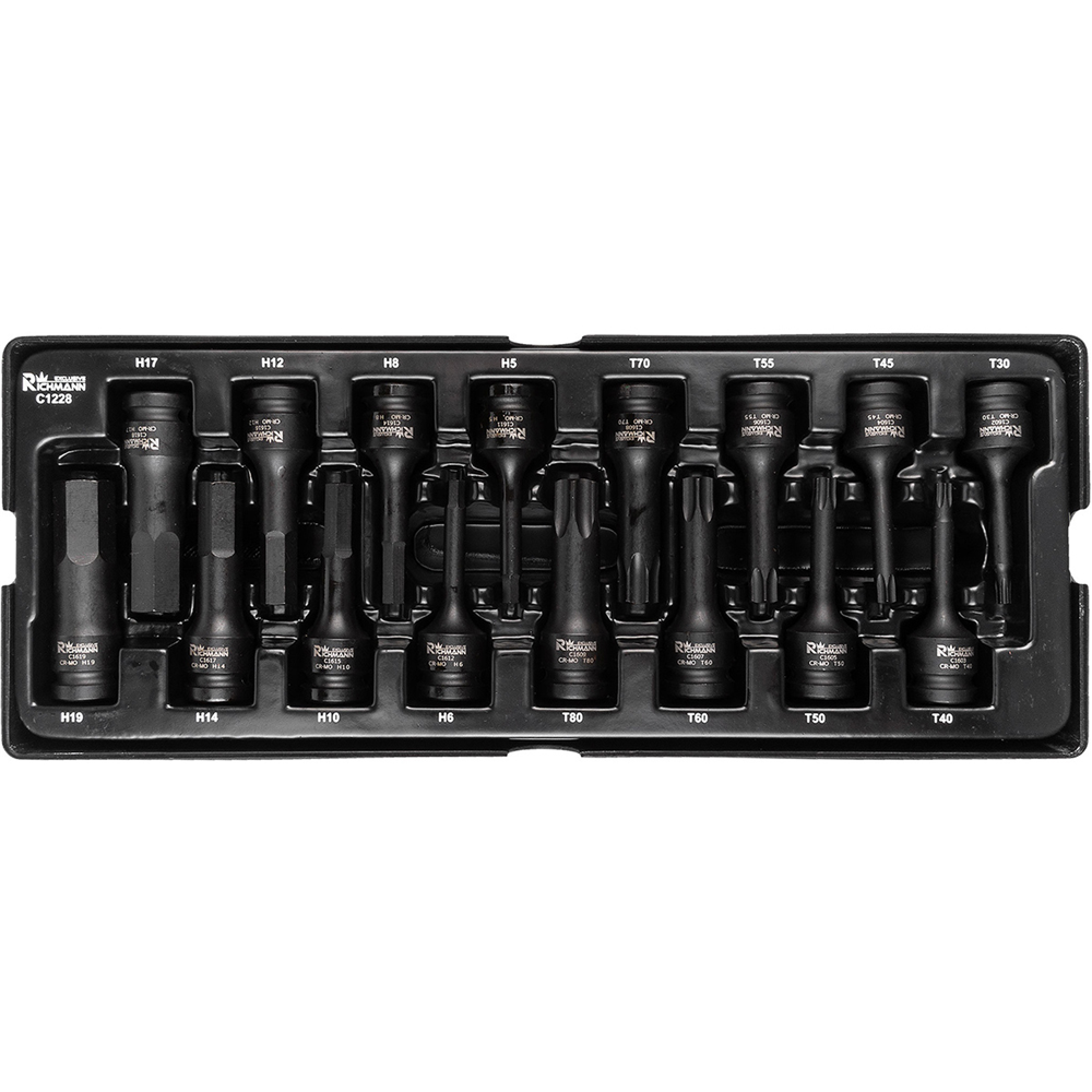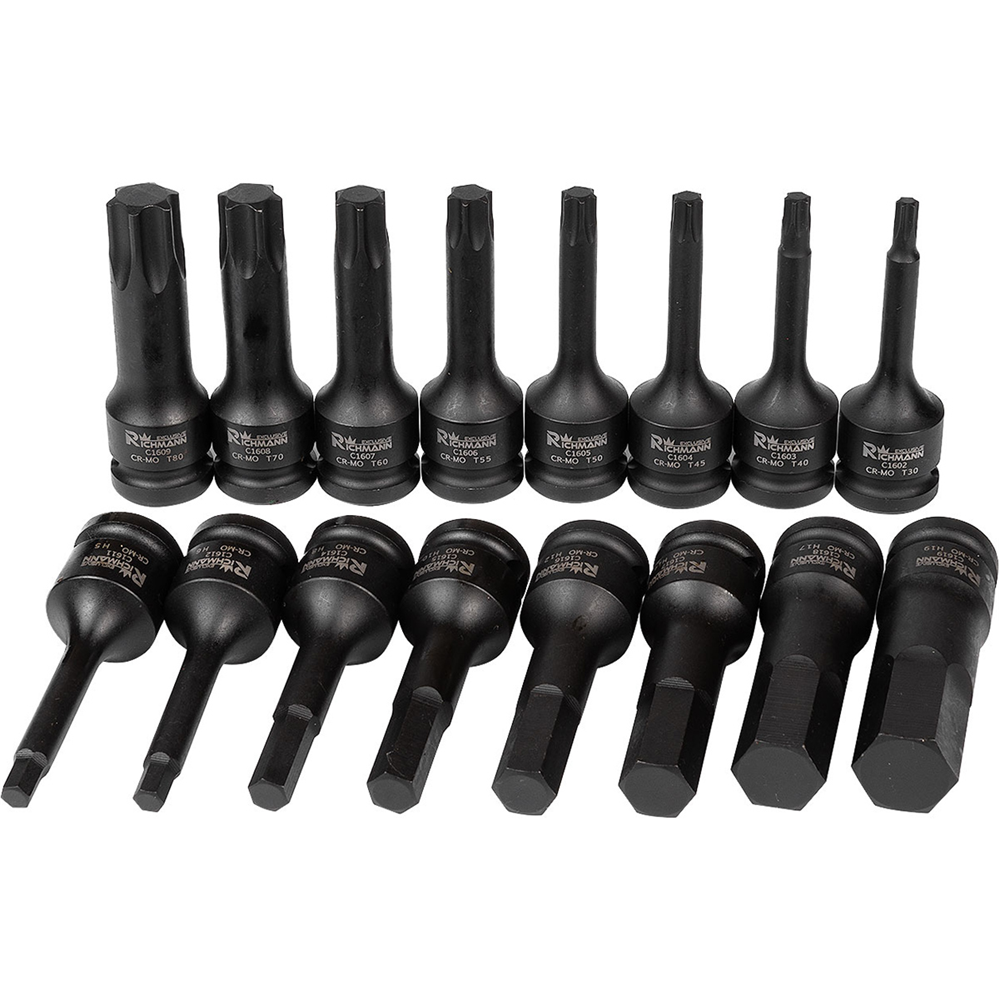 WKŁAD - NASADKI UDAROWE 1/2' 78MM IMBUS H5-H19, TORX T30-T80 16 ELEM.