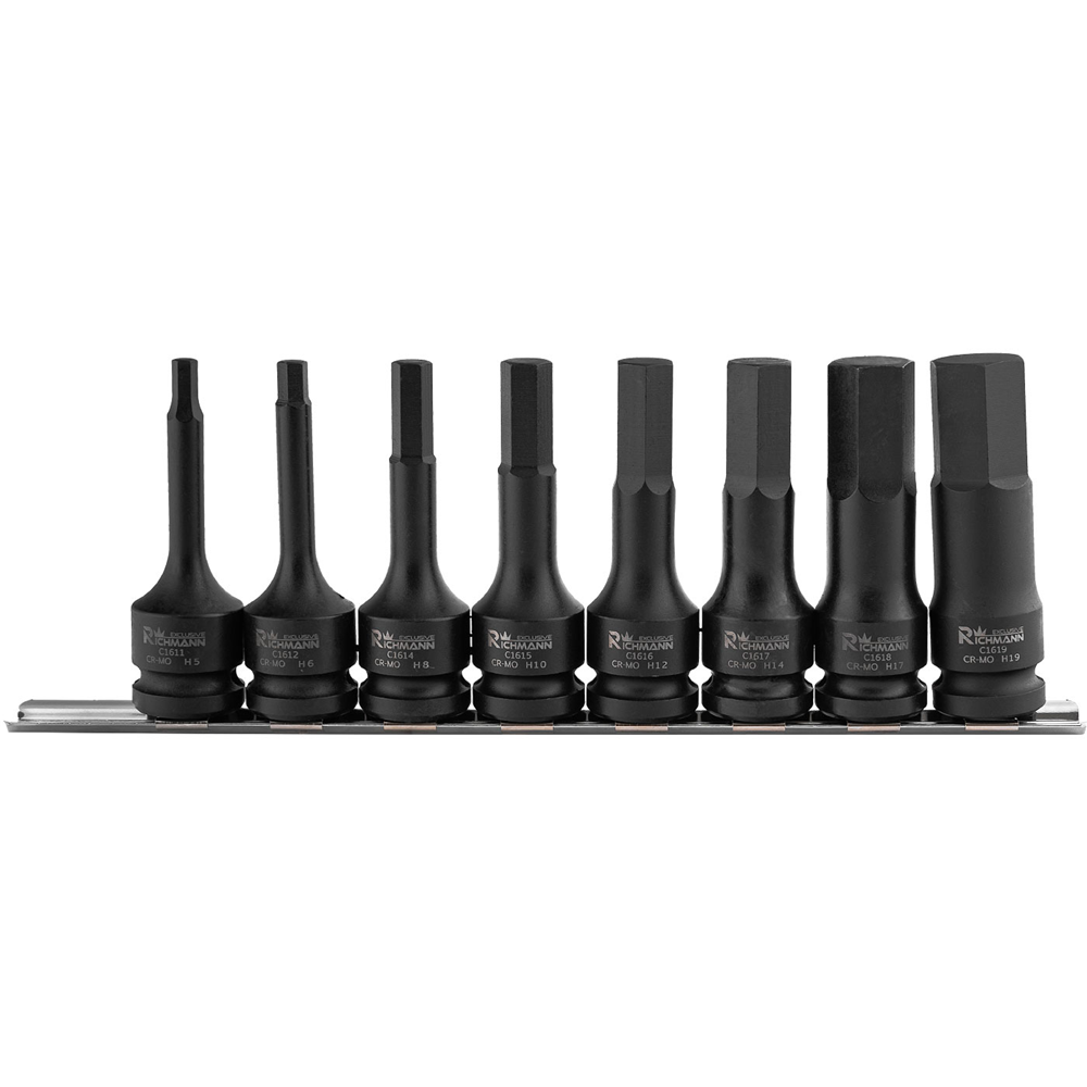 Zestaw 8 sztuk nasadek udarowych HEX w zakresie rozmiarów H5-H19