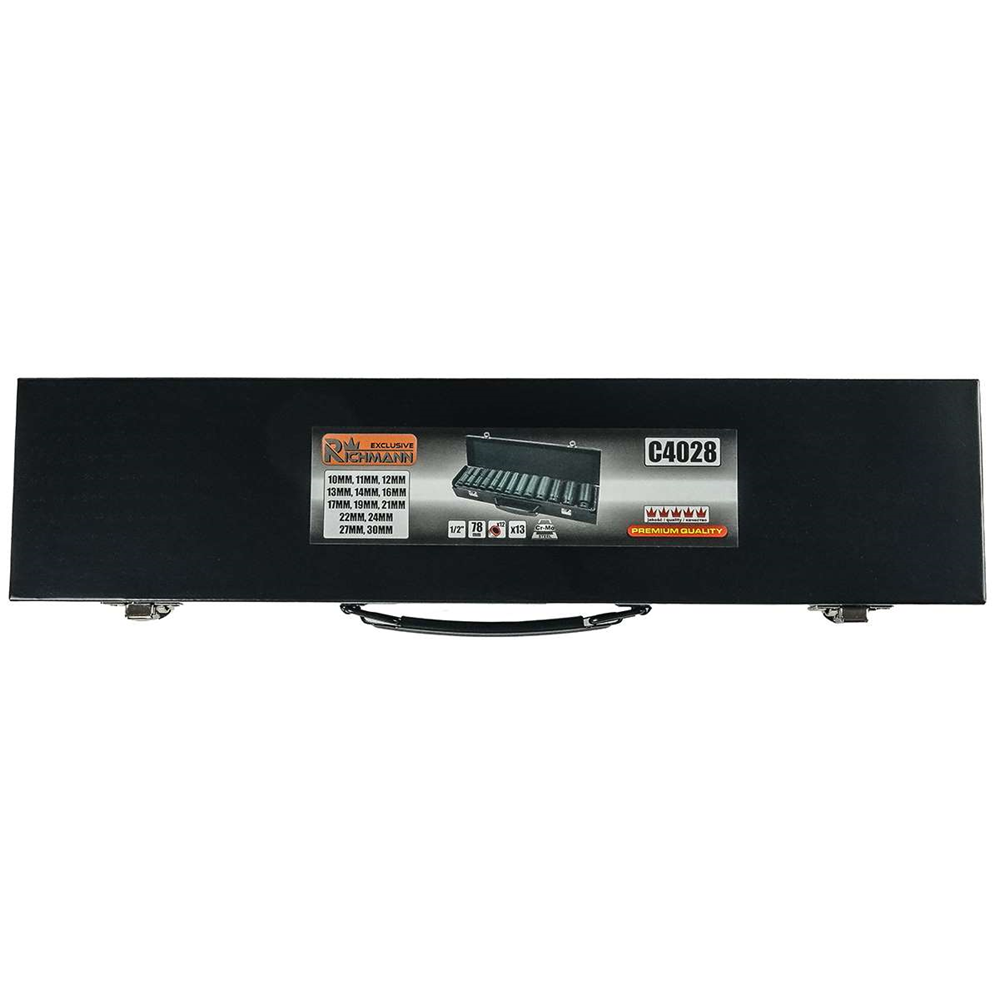 Zestaw zawiera rozmiary [mm:] 10, 11, 12, 13, 14, 16, 17, 19, 21, 22, 24, 27,