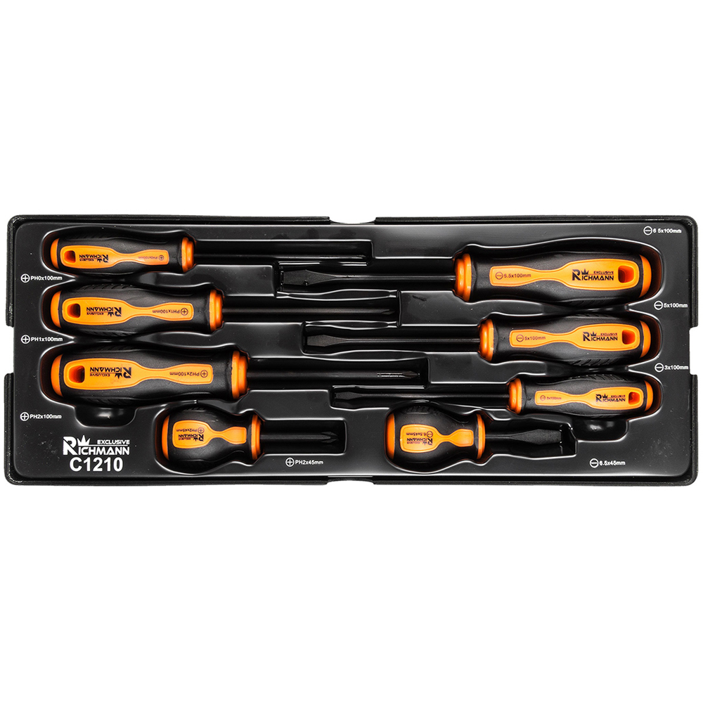 Zestaw 8 sztuk wkrętaków umieszczony we wkładzie do wózka
